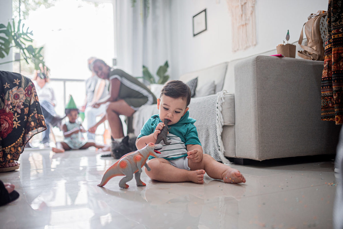 Festa em casa, apenas pais e avós. O item de luxo é estar todos em segurança com as suas pessoas preferidas no mundo. No local que a criança mais se sente segura, confortável e feliz.